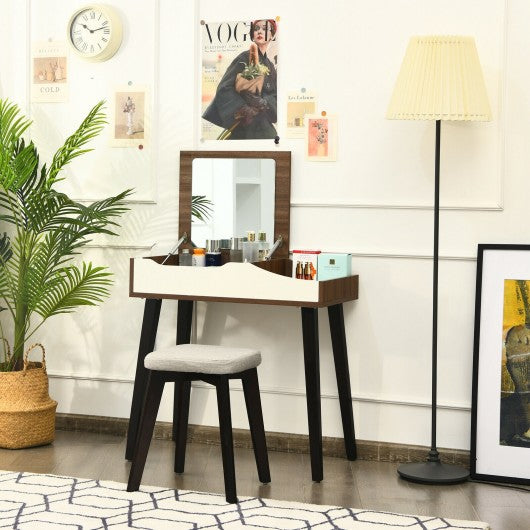 Vanity Table Set with Flip Top Mirror and Padded Stool-Wood