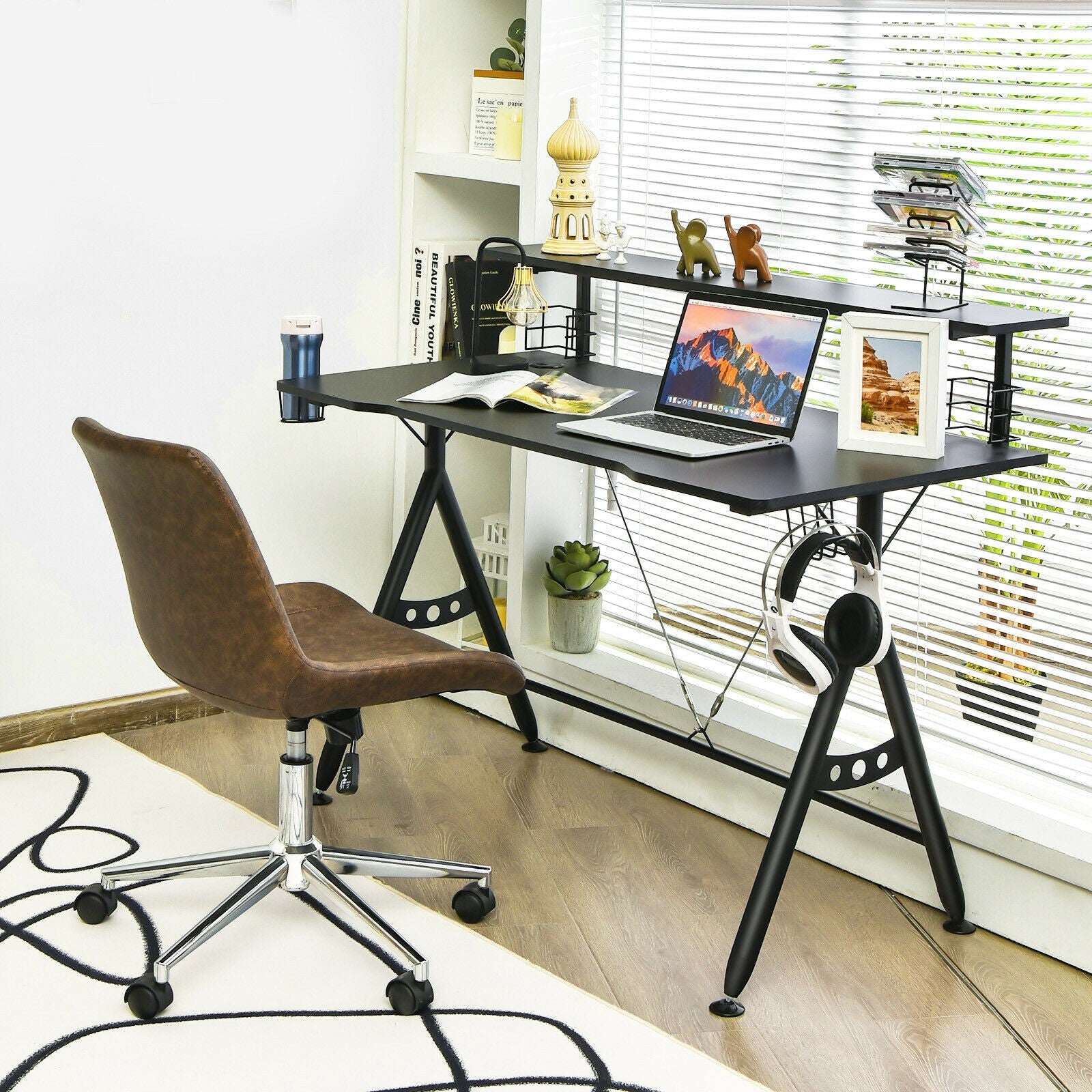 E-Sports Gaming Desk with Monitor Shelf and Cup Holder