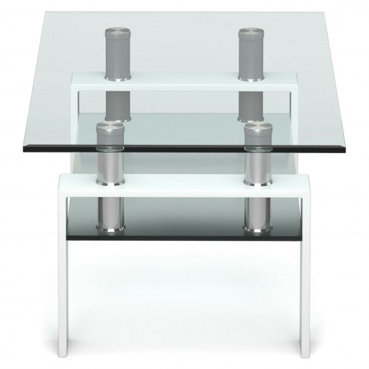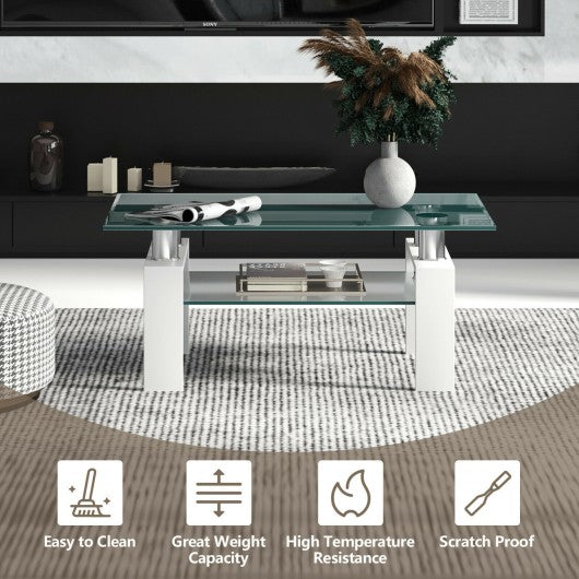 Rectangle Glass Coffee Table with Metal Legs for Living Room-White