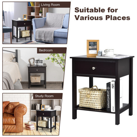 Wooden Storage Shelf for Bedroom and Living Room with Drawer-Coffee