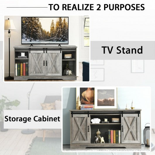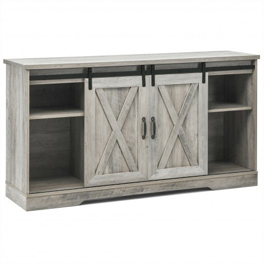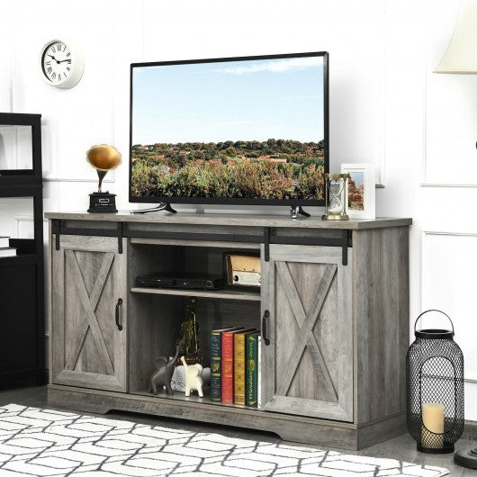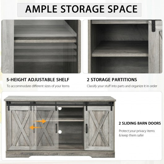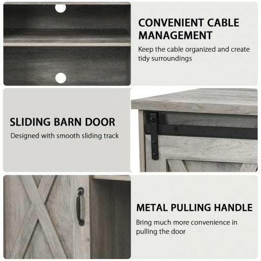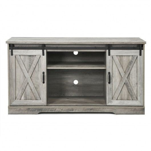 59" TV Stand with Adjustable Shelf and Sliding Barn Door Cabinet-Gray