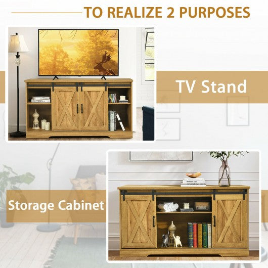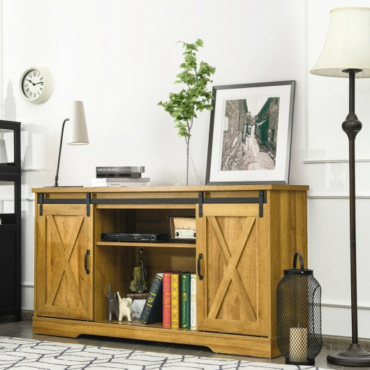59" TV Stand with Adjustable Shelf and Sliding Barn Door Cabinet-Golden