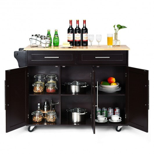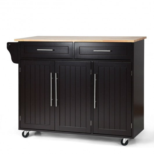 Kitchen Island Trolley Wood Top Rolling Storage Cabinet Cart with Knife Block-Brown