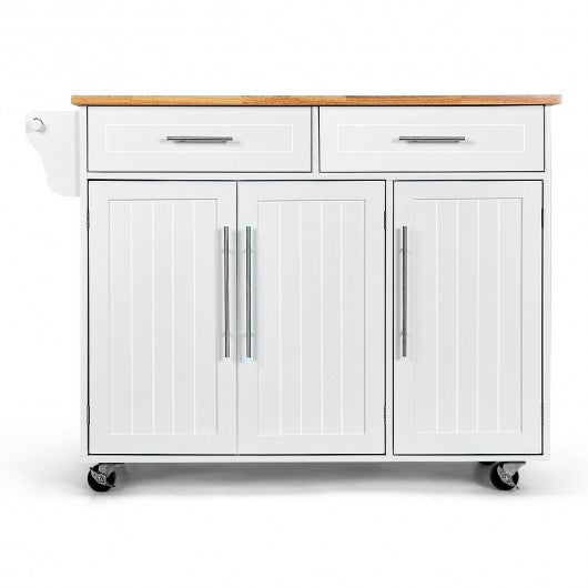 Kitchen Island Trolley Cart Wood Top Rolling Storage Cabinet-White