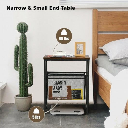 The first thing you will notice is the special mesh magazine holder sling under the table ready for you to throw magazines blankets and newspapers into. The wide tabletop is also a great display place for your lamp coffee cup and other decorations. Although featuring a large storage room it is a table that is suitable for small areas. The sturdy steel base keeps durability and stability while the anti-slid foot pads magnified the balance ability of the table. In addition it is easy to install and maintain. If you are looking for a product like that do not hesitate to buy it! Designed for a small space and a narrow area Suitable for living room office bedroom and so on Mesh magazine holder sling for easy storage and benefits to visibility and ventilation The weight capacity of the magazine rack is 5 lbs. The weight capacity of the tabletop is 66 lbs. Bring the deep charm of the mid-century and classic atmosphere to the interior Rust-proof steel base with anti-tipping foot pads assure stability and durability Easy to maintain and assemble