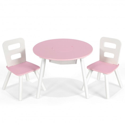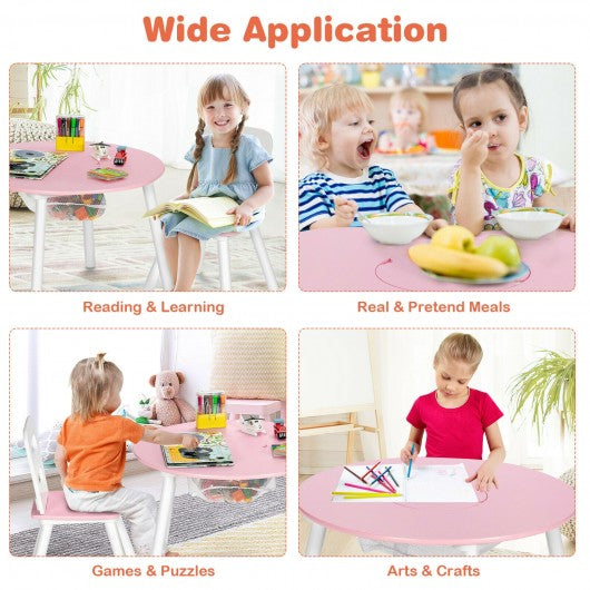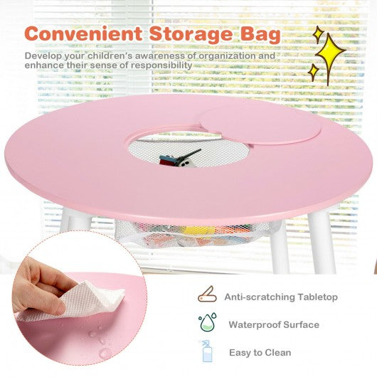 Wood Activity Kids Table and Chair Set with Center Mesh Storage for Snack Time and Homework-Pink