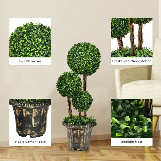 30" Artificial Topiary Triple Ball Tree Indoor and Outdoor UV Protection