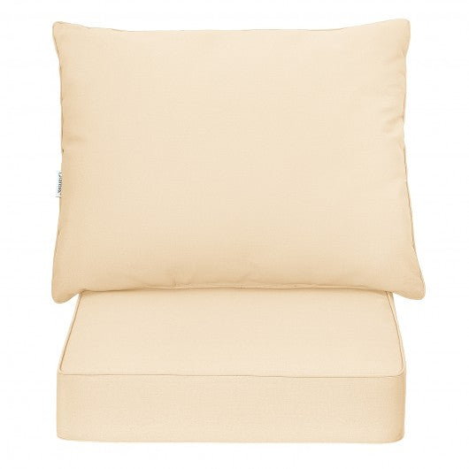 This versatile chair cushion set includes 1 seat cushion and 1 backrest which is suitable for both indoor and outdoor usage. Upgrade your outdoor patio furniture with premium outdoor seat cushions which are comfortable durable and will become the perfect addition to your backyard patio or balcony. Besides this practical cushion set can match well with wicker chairs aluminum outdoor chairs iron chairs and other patio furniture. The waterproof polyester fabric ensures long-term use and is easy to maintain. Rope belt design increases overall stability and the sun-proof function can withstand outdoor sunlight. In addition the removable cover with a smooth zipper will reduce your cleaning burden. Enjoy your outdoor leisure time with these thickened cushions! High resilience cotton for better sitting experience Rope belts can firmly fix the seat cushion and are not easy to misplace during use The thick and soft backrest can relieve waist soreness The sun-proof function is ideal for both indoor and outdoor use Lightweight design saves time and energy for moving The oil-proof polyester fabric makes it easy to maintain Easy to clean with removable covers