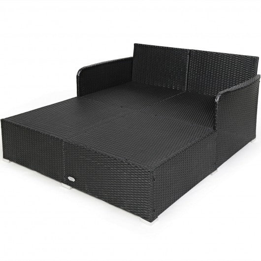 Outdoor Patio Rattan Daybed Thick Pillows Cushioned Sofa Furniture-White