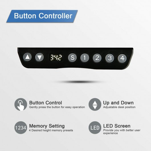 Embrace your working style with this 2-tier electric sit to stand desk! Powerful lifting system can well fulfill different requirements for daily use. You can choose to sit or stand while working studying and gaming relieving your spine fatigue. Compared with ordinary desk this standing desk features 2-tier design for more convenience. The upper desktop keeps monitors at eye level while the lower desktop is spacious enough to put necessary office supplies. There are hanging hooks and cable management tray to free more tabletop surface for a tidy working environment. Constructed with premium steel material it offers exceptional sturdiness. The 4 adjustable foot pads and 4 lockable rolling casters are available for your needs in different occasions. More thanks to high quality monitor the height adjustable desk can be adjusted smoothly and quietly without shaking and noise. In addition it adopts advanced anti-collision technology to avoid bumps and ensure higher safety when the desk goes up or down. If you are looking for the standing desk like that don't hesitate to buy it! Height adjustable design meets different need either for sitting or standing posture Powerful lift system with 1.2’’ per second lift speed High quality motor for quiet operation in low noise under 45db Built-in anti-collision technology prevents the desk from bumps 4 memory height settings can be saved for convenient and instant adjustment Large tabletop offers you ample space to place items Upper desktop is adjustable in 34.6’’–54’’ lower one in 28.7’’–48’’ Steel frame ensure great sturdiness and strong load bearing capacity 4 adjustable foot pads will keep the desk stable on uneven ground Come with 4 rolling casters for flexible mobility lockable as well Designed with hanging hook and cable management tray for more convenience Modern style matches well with different home office decoration Perfect for studying working gaming during exercise time