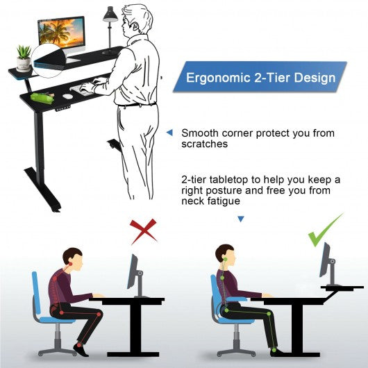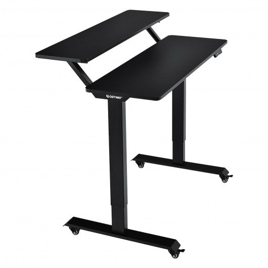 Electric 2-Tier Standing Desk Mobile Sit Stand Desk Height Adjustable-Black