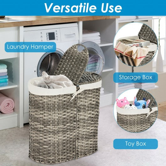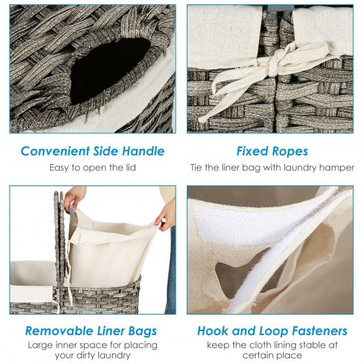 Handwoven Laundry Hamper Basket with 2 Removable Liner Bags-Gray