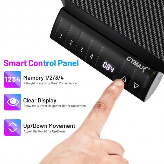 The professional electric lifting gaming desk creates a better gaming and working environment for you. Equipped with a noiseless motor this table allows you to adjust the height freely. The low noise of the motor won't disturb anyone. Try the new way of standing work and play to relieve your fatigue caused by a long time sitting. The digital height controller provides 4 memory buttons for you to save your desired desk height. With elegant carbon fiber texture this electric computer desk is suitable for your study living room office and so on. No matter how old you are you can always find the most comfortable height. If you are looking for an electric standing gaming desk with a height-adjustable splice board like this do not hesitate to buy it! Electric height adjustment is easy to operate. Classic black is suitable for various room decors. A wide height adjustable range can satisfy children and adults. The noiseless motor provides stable and smooth table height lifting. Rustproof steel frame and engineered wood desktop are sturdy to work for a long time. 4 programmable height memory buttons are convenient for you to change the desired height. A spacious desktop with cable management can support plenty of items without crowds.
