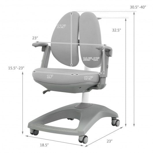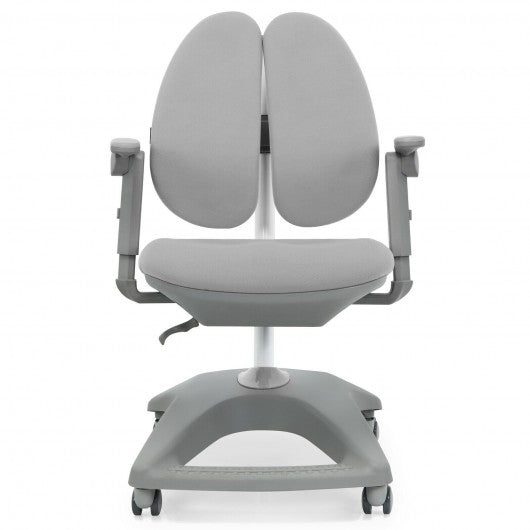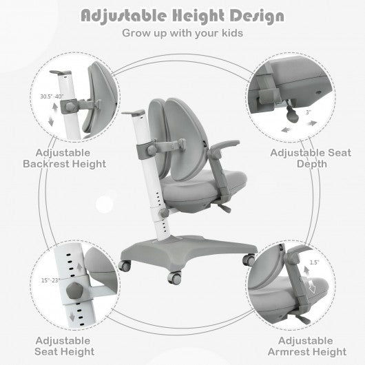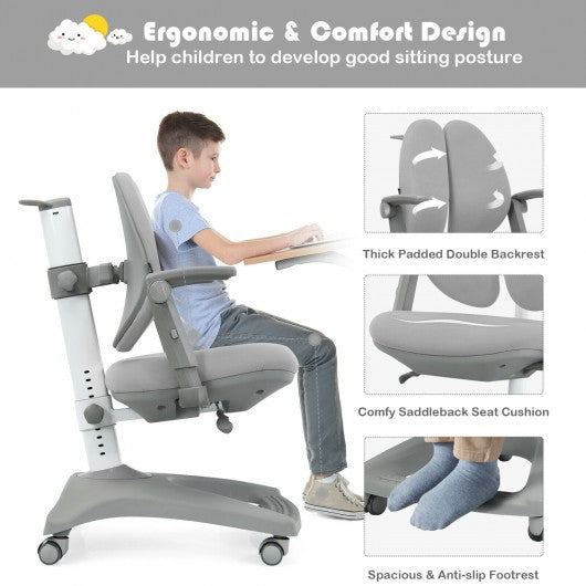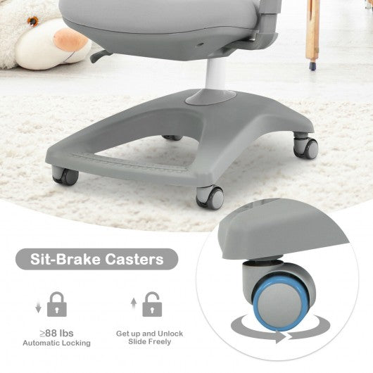 Kids Adjustable Height Depth Study Desk Chair with Sit-Brake Casters-Gray