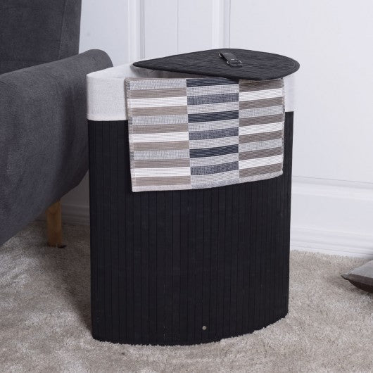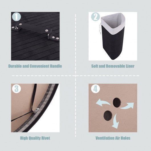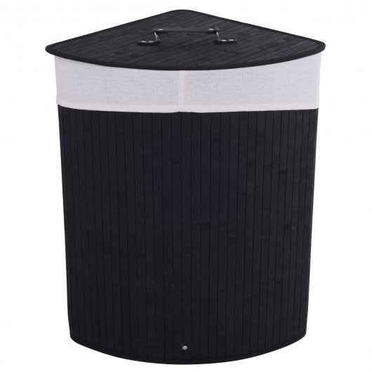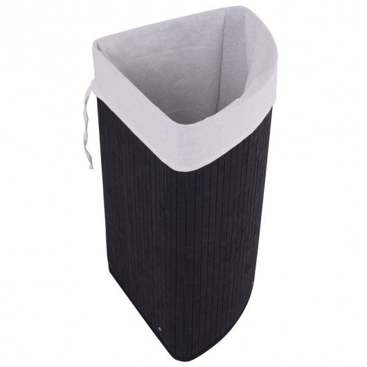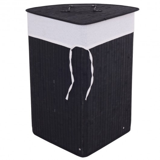 Corner Bamboo Hamper Laundry Basket-Black
