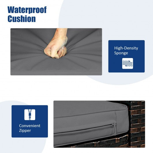 3 Pieces PE Rattan Wicker Furniture Set with Cushion Sofa Coffee Table for Garden-Gray