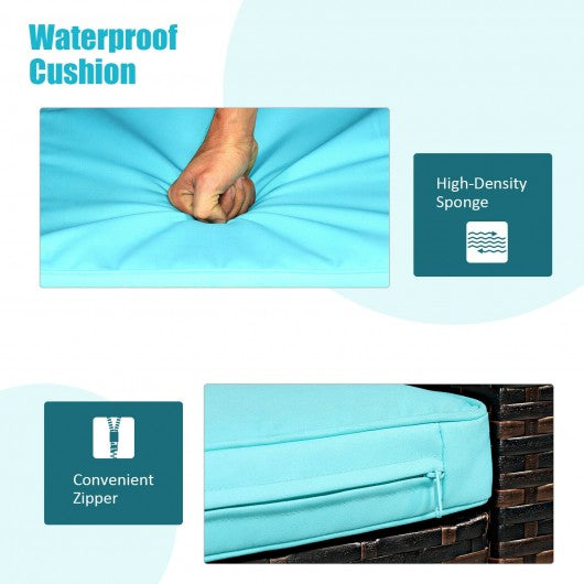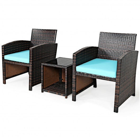 3 Pieces PE Rattan Wicker Furniture Set with Cushion Sofa Coffee Table for Garden-Turquoise