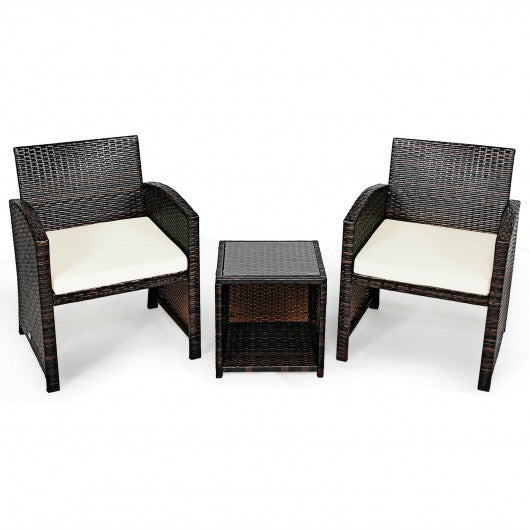 3 Pieces PE Rattan Wicker Furniture Set with Cushion Sofa Coffee Table for Garden-White