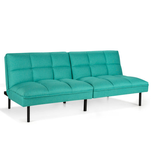 Convertible Fabric Sofa Bed with 3-Level Adjustable Backrest Angle-Turquoise