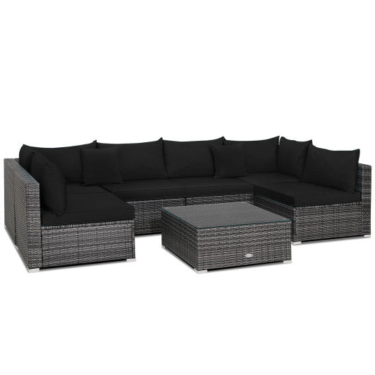 7 Pieces Patio Rattan Furniture Set with Sectional Sofa Cushioned-Black