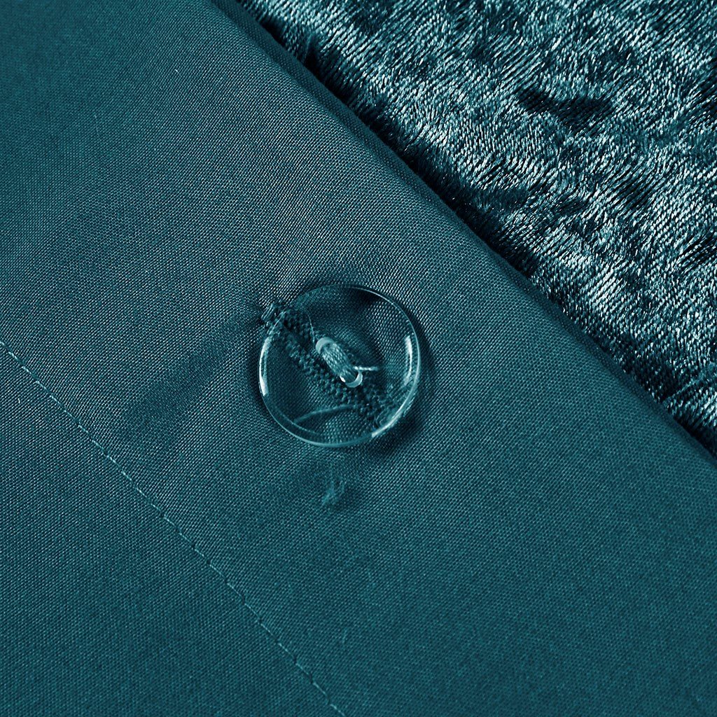 - Material/Fabrication: Duvet Cover / Sham: 100% polyester crushed velvet fabric on face, with diamold quilted top, solid microfiber reverse; sham has narrow flange and overlap opening at back. Duvet cover with 4 inner ties and button closure. Pillow: microfiber cover with embroidery, poly fill