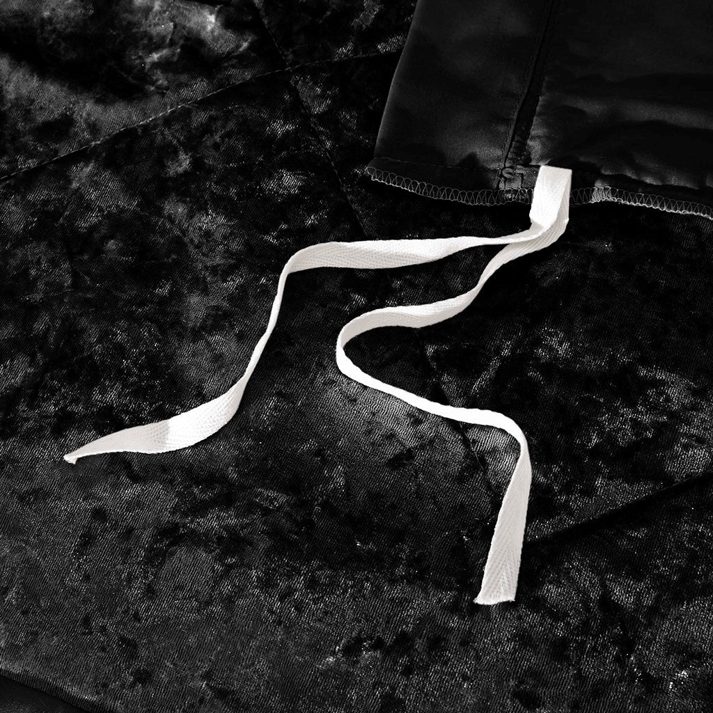 Create a luxuriously comfortable and lush bedroom space with the Intelligent Design Felicia Velvet Duvet Cover Set. The crushed velvet, black duvet cover features a quilted diamond top that adds dimension to the glamorous look. Matching shams (1 for Twin/Twin XL Sizes) coordinate with the velvet duvet cover, while an oblong decorative pillow provides the perfect finishing touch. Machine washable for easy care, this velvet duvet cover set brings incredible softness and comfort with a glamorous flair to your bedroom decor. Button closures allow you to place a comforter insert within the duvet cover and internal corner ties help prevent it from shifting (Insert is NOT included).