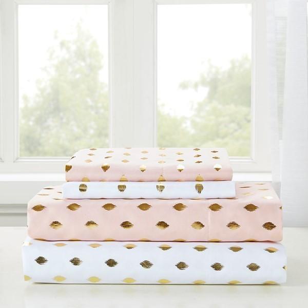 Add a touch of glam to your bedroom with the Intelligent Design Metallic Dot Printed Sheet Set. A metallic Ikat-style dot print is brilliantly displayed on the soft-hued fabric for a stunning modern look. Made from ultra-soft microfiber, this printed sheet set provides exceptional comfort and a contemporary style to update your bedroom décor. The fitted sheet fits mattresses up to 16 inches.
