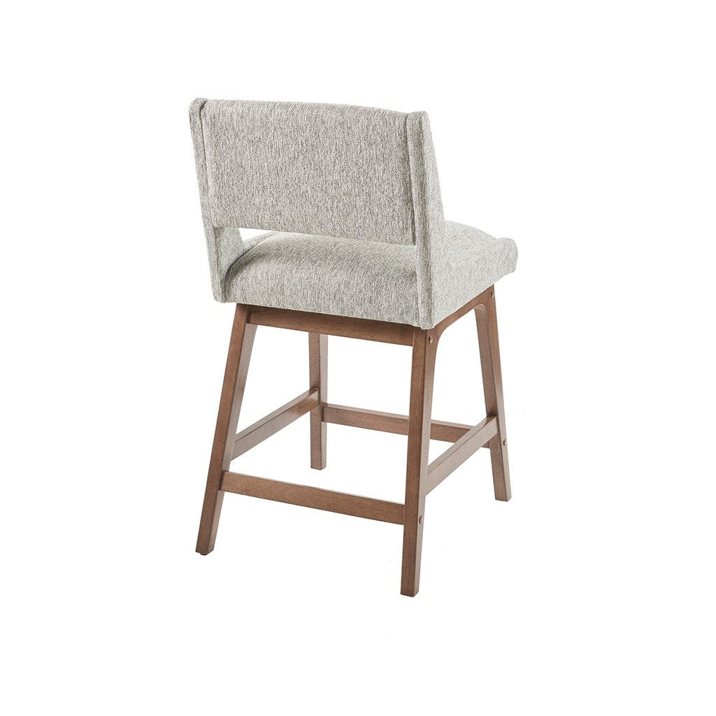 Beautifully crafted, the INK+IVY Boomerang Dining Counter Stool adds a chic look to your dining area. The attached seat cushion and back are fully upholstered for a superior comfort, while straight solid wood legs provide exceptional support. A pecan finish on the legs of these dining chairs complements the light grey upholstery creating a warm appeal. Include this upholstered counter stool in your home to bring out the beauty and style of your dining room. Assembly is required. Max weight capacity: 300 lbs.