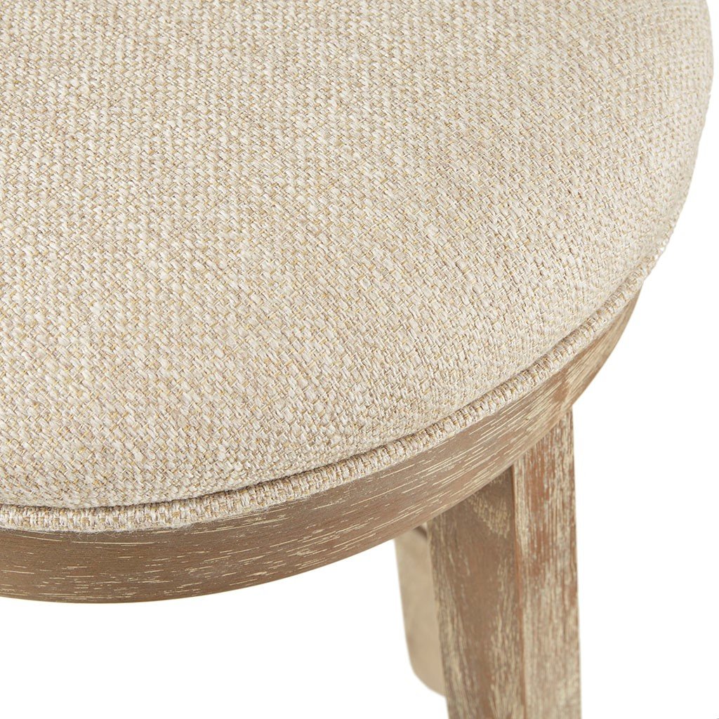 Introduce a natural allure to your space with the INK+IVY Oaktown Swivel Counter Stool. A comfortable upholstered seat is perfectly supported by the lightly distressed grey frame, creating a rustic look. The black finish on the metal ring footrest adds a bold contrast to the light grey hues and natural wood, while the swivel feature allows you to easily rotate around. Incorporate this swivel counter stool into your kitchen decor to add a charming urban farmhouse look to your home. Assembly is required.