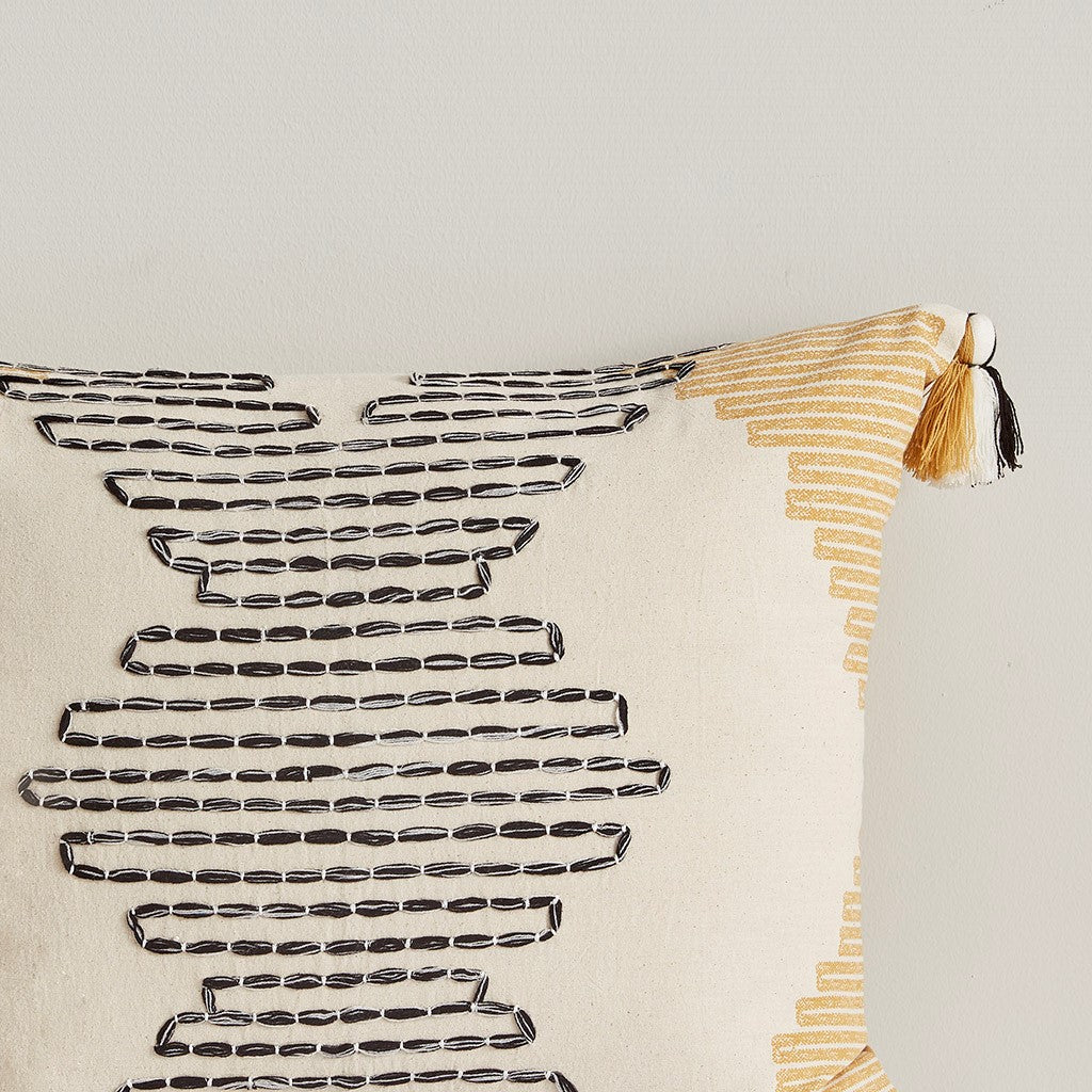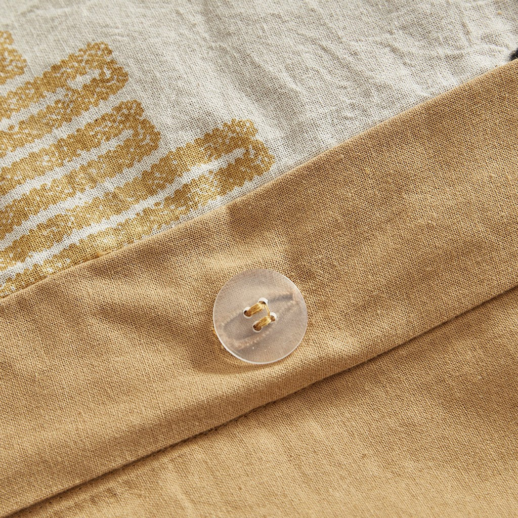 The INK+IVY Arizona 3 Piece Cotton Duvet Cover Set offers a shabby chic update to your bedroom. This 100% cotton duvet cover features a yellow and grey geometric print with twisted yarn embroidery, for a modern take on a southwestern design. Coordinating tassels at the end corners of the duvet cover add an elegant touch, while the solid yellow reverse complements the top of the bed. Matching shams with tassels in the corners and overlap openings complete this cotton duvet cover set. A button closure allows you to place a padded insert within the duvet cover and inside corner ties prevent it from shifting (insert is NOT included).