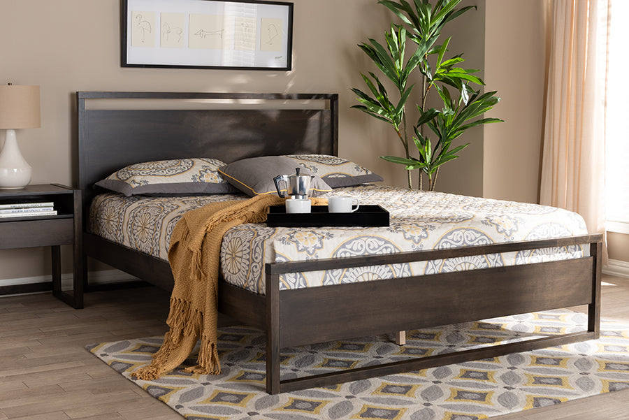 Baxton Studio Inicio Modern and Contemporary Charcoal Brown Finished Wood Queen Size Platform Bed