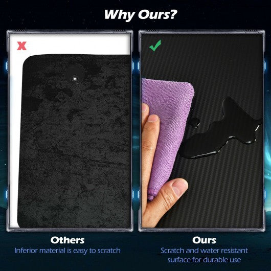 Still looking for a gaming desk to fill your E-sports Room? Then you should never miss this Z-shaped gaming desk. This gaming desk provides you with a comfortable using experience! It is designed with multiple accessories such as a cup holder headphone hook and gaming handle rack. Besides the solid steel frame and MDF material make it durable for long-time use with a weight capacity of 330lbs. In addition anti-skid foot pads are adjustable which ensures stability even on uneven floors. The gaming desk is easy to clean and maintain its scratch-proof and waterproof surface. It is suitable for dormitory living room bedroom or E-sports room. If you are looking for a gaming desk don’t miss it! Supported by a heavy-duty steel frame to hold up to 330lbs Desktop with excellent water and scratch resistance for long-time use Adjustable anti-skid pads ensure overall stability and avoid scratches on the floor Equipped with cup holder headphone hook and gaming handle rack for convenient use Two cable management holes keep cables organized Arc design surface provides a more comfortable gaming experience 47'' x 23.5'' tabletop is spacious enough to place monitor keyboard gamepad and more Easy to clean with a soft cloth