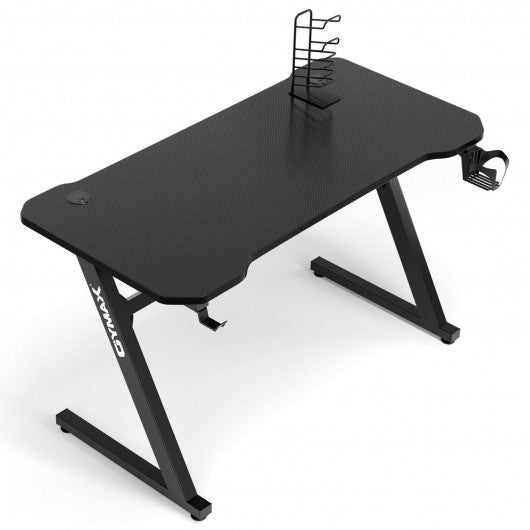 Gaming Desk Z-Shaped Computer Office Table with Gaming Handle Rack