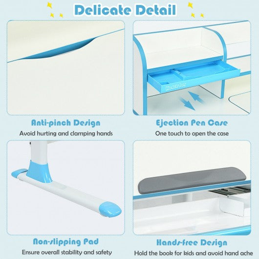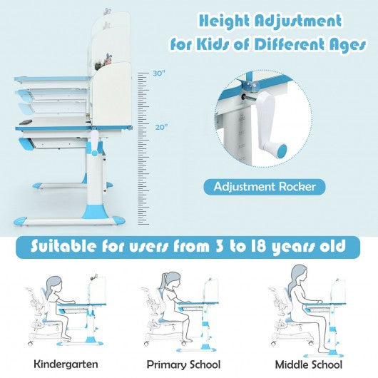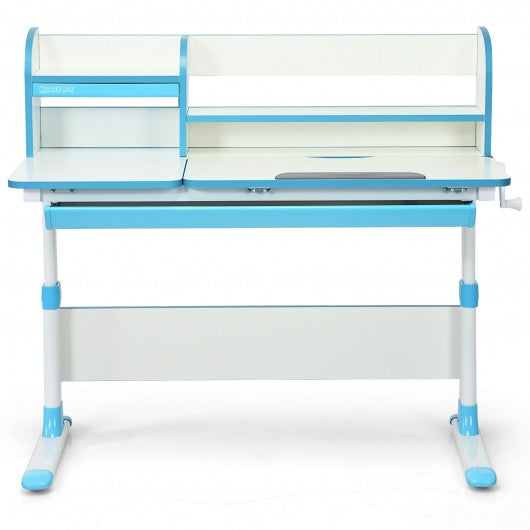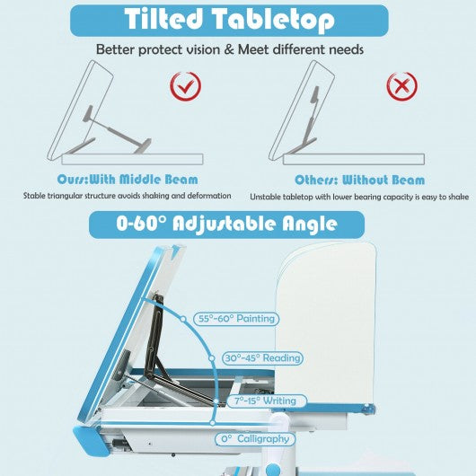 Adjustable Height Study Desk with Drawer and Tilted Desktop for School and Home-Blue