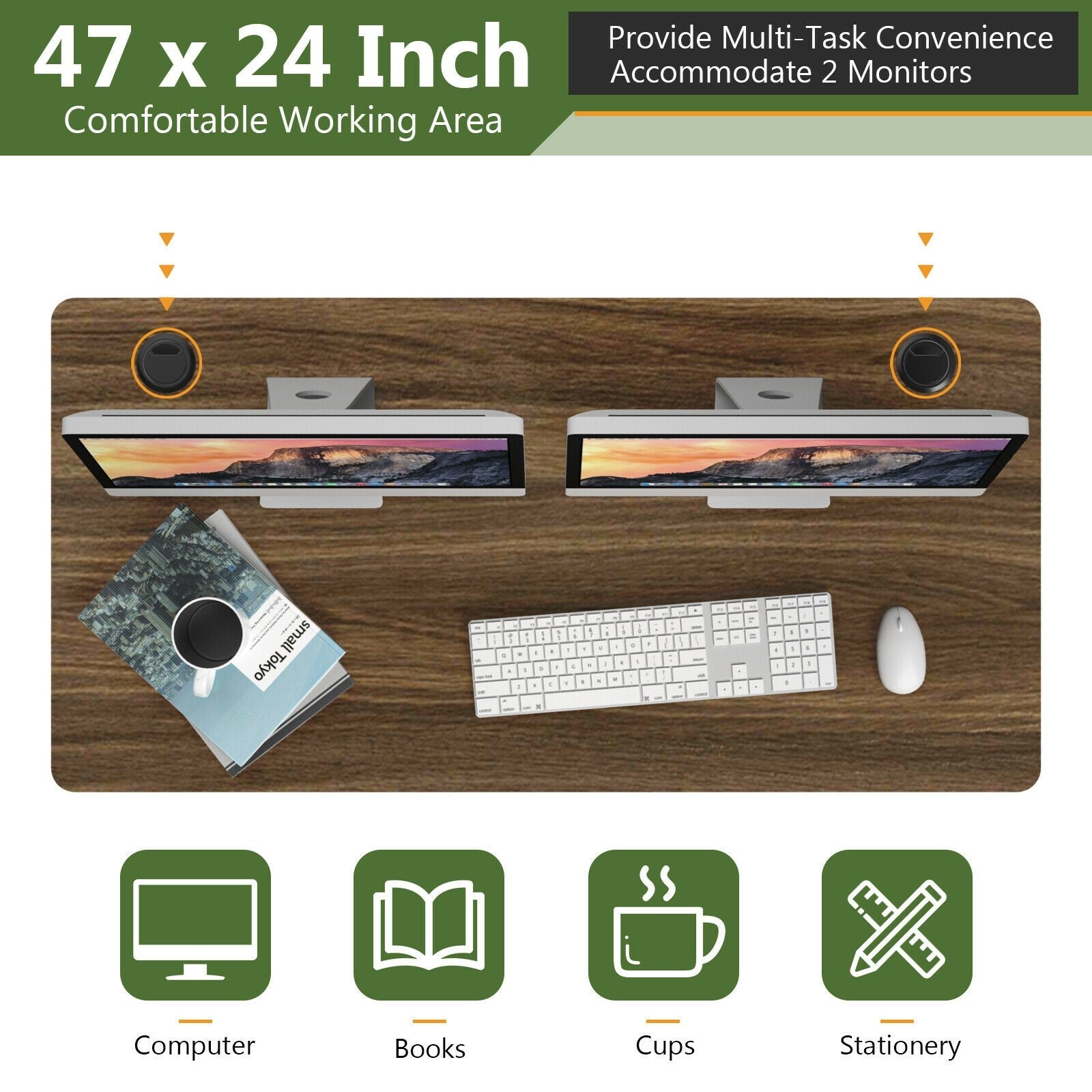 Specification: Color: Black/Natural/Walnut Material: Engineered wood PVC Product dimensions: 47" x 24" Product thickness: 1" Net weight: 25.5 lbs Package includes: 1 x Desktop