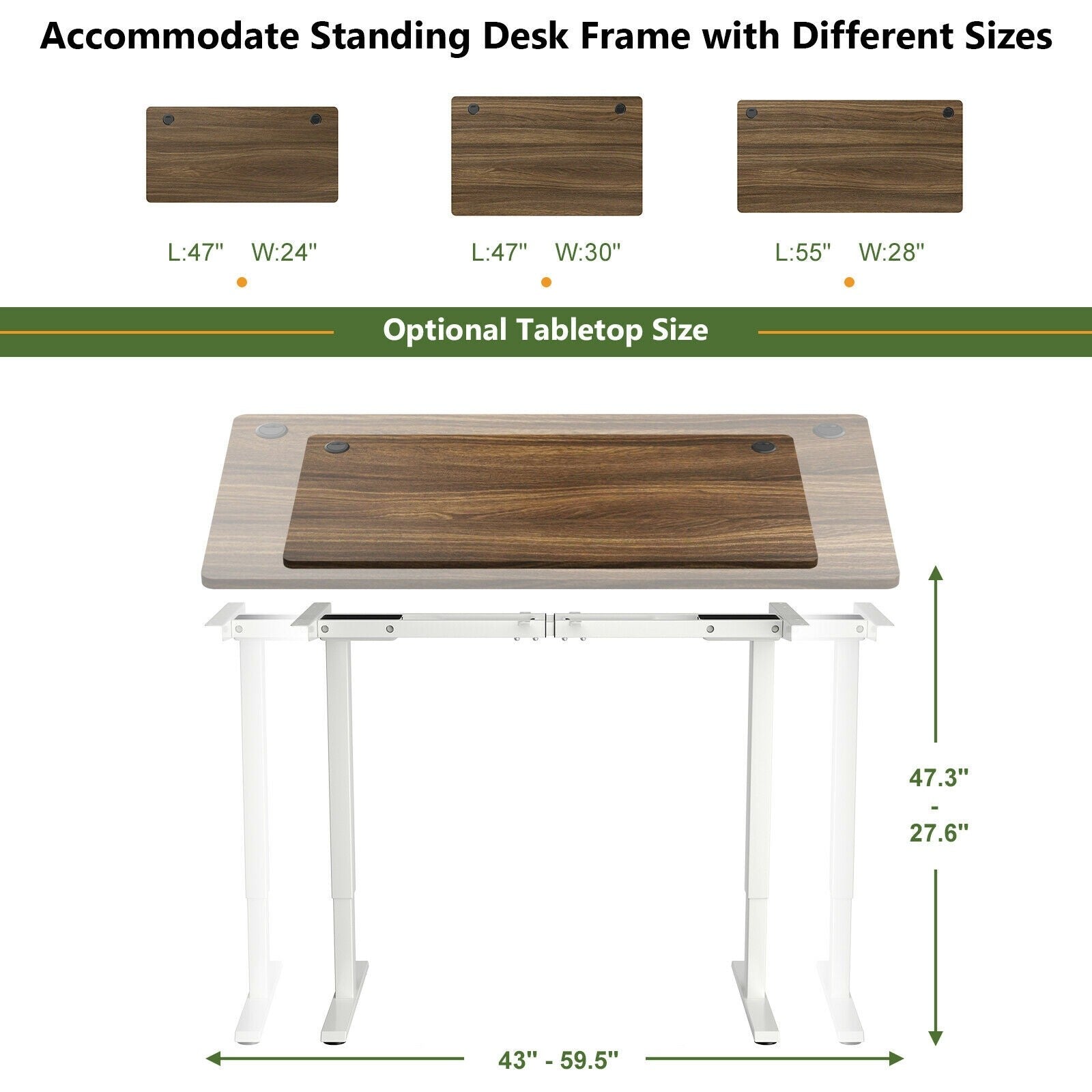47” x 24” Universal Tabletop for Standard and Standing Desk Frame-Walnut