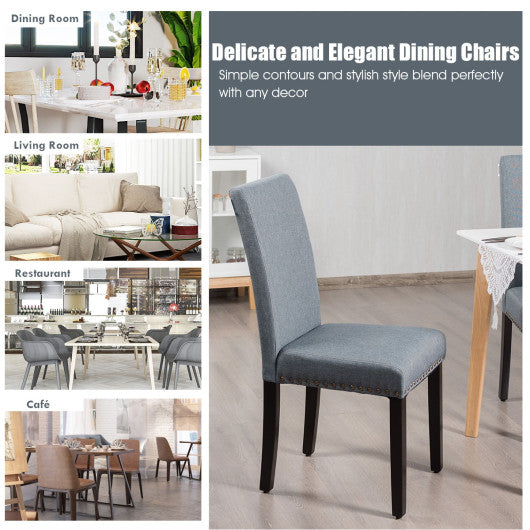 Set of 2 Fabric Upholstered Dining Chairs with Nailhead-Light Gray