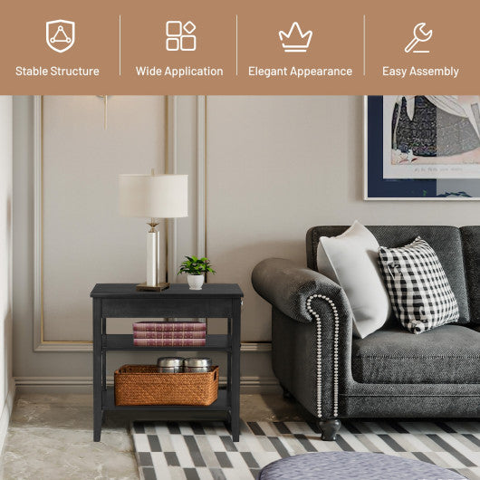 3-Tier Side End Table with Drawer Double Shelf-Black