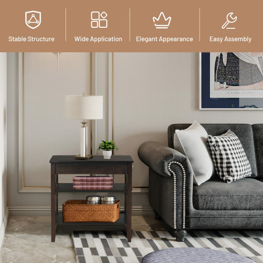 3-Tier Side End Table with Drawer Double Shelf-Brown