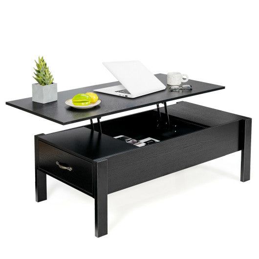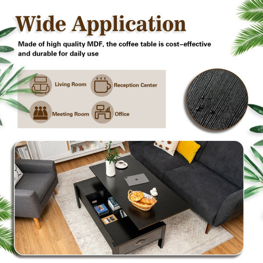 47 Inch Lift Top Coffee Table with Hidden Compartment and Drawers-Black