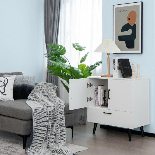 Mid Century Storage Cabinet with 2 Doors and 1 Pull-out Drawer-White