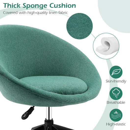 The swivel accent chair injects a charming flair to your room. A breathable linen fabric cover and high elastic sponge filling provide you with a comfortable sitting experience. Besides this home office chair is designed with round back and padded cushion to hold your back waist and hip. Its 360-degree swiveling function enables you to freely rotate the seat to communicate with people from different directions. Moreover the desk chair features solid frame and stable base for excellent durability. It can support a weight up to 330 lbs. Furthermore 5 flexible casters ensure smooth moving. With attractive look delicate sewing and beautiful colors (blue/ green /gray) this task chair will be a real eye-catcher. If you are looking for a accent chair like this do not hesitate to place an order! Skin-friendly linen fabric and high density sponge for comfortable sitting The seat height can be adjusted from 16.5" to 19.5" 360-degree swivel seat enables you adjust any direction as you like Round back and padded cushion to relieve your fatigue Flexible casters to easily move it from one place to another place Premium gas lift and stable base for high durability and stability Can be used as a vanity chair a makeup chair a study chair and an office chair Easy to assemble with easy-to-understand user manual Able to bear a weight up to 330 lbs