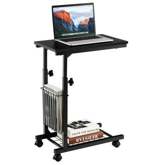 A good assistant for your working studying or any other activities! Unique c-shape design is easy to insert the table into the bottom of the sofa or bed. The tabletop is spacious enough to put necessary office supplies. The combination of storage basket and bottom mesh storage shelf gives your more space to store daily items. Moreover you can turn the knob to adjust your desired height. For great mobility and convenient use the flexible casters make it easier to move the sofa side table from one place to another. Whether used in the living room bedroom and office this c-shape end table will undoubtedly be an ideal choice. If you are looking for such a product do not hesitate to take it to your home! A C-shape side table can be tucked under the sofa or bed to save space Flexible height adjustment can well suit your different needs Wide tabletop storage basket and mesh shelf for convenient storage Durable MDF and sturdy steel frame ensure reliable structure Smooth-rolling casters realize quiet and easy movement Two casters come with brakes for extra stability Rustic style matches well with interior decorations Work great as an overbed table laptop table couch table snack table etc. Easy to assemble under the guidance of the instruction