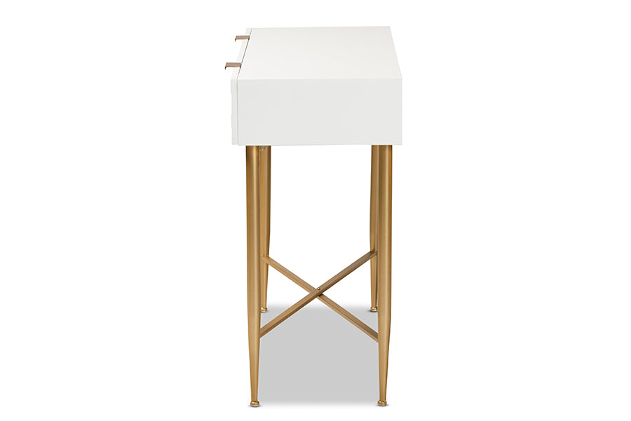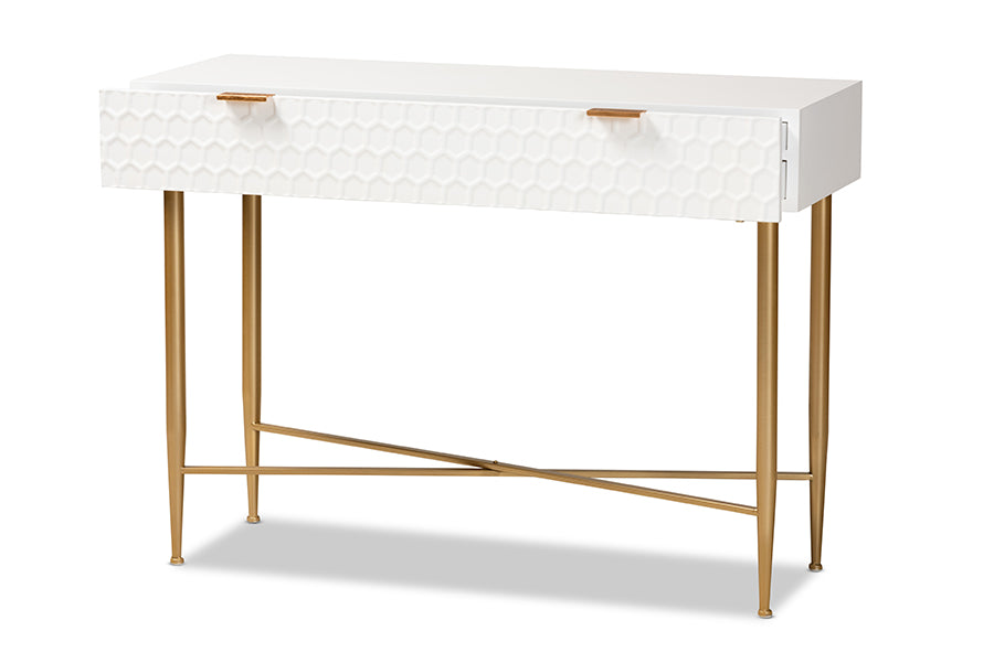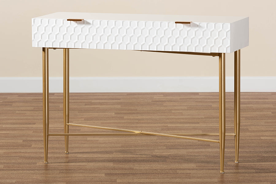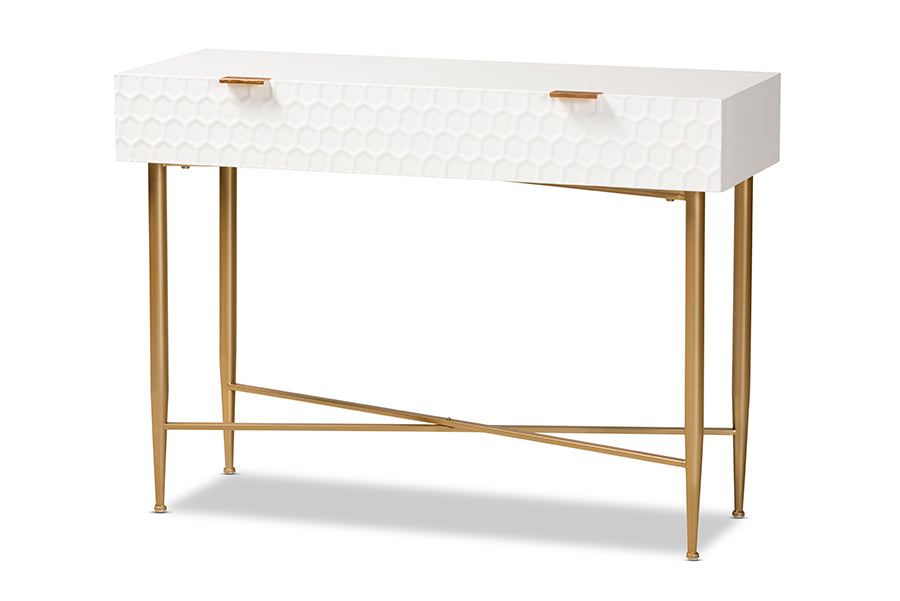 Baxton Studio Galia Modern and Contemporary White Finished Wood and Gold Metal 1-Drawer Console Table