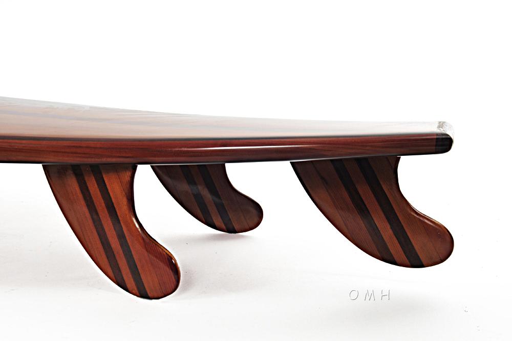 Reinventing what surfing could be, this western red cedar surf board is a true gem for even the most experienced wave rider. Handcrafted and then encapsulated in fiberglass epoxy it can certainly stand up to the toughest of watery terrains. The design is phenomenal, featuring three smooth and rich looking fins all about 8” in length. With a 2” thickness, this solid piece will keep you surfing for hours. Engineered for ultimate performance, the board is perhaps most notable for its deep toned beauty. Craftsmanship galore represents the best of what this board has to offer. The thickness of the board is about 2" and it has 3 fins. Each fin is about 8" in length. This surfboard weight at 12.65 lbs.