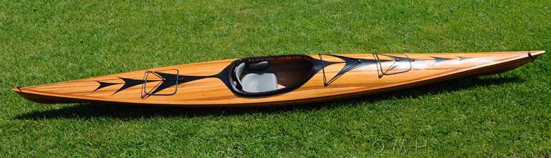 Cut through the water quickly, smoothly and in classic kayak style with this incredibly beautiful watercraft. As much work of art as it is the boat, this kayak will be in your family for years and years as you and your experience hours of enjoyment. Our process is thorough. Over 500 hours of craftsmanship went into the creation of this handmade vessel. It certainly shows! Coated in a strong fiberglass/ epoxy finish it is truly built to withstand whatever may come it's the way. And with such a sleek design, you will certainly be proud to be seen in this one-of-a-kind kayak. This 17 kayak (206 inches) has the following measurements: Length: 206 inches (over 17 feet) Width: 23 inches. Bow Height: 13 inches Cockpit circumference: 90" inches Cockpit outer dimension: 33.5"L x 20"W inches Cockpit inner dimension: 31.25"L x 18"W inches Cockpit seat base: 15"L x 15"W inches Weight: 50 lbs Capacity: 550lbs Features - Stunning beautiful clear graded cedar hull - Fiberglass adds important tensile strength and abrasion resistance to the wood - 100% western red cedar make our boats surprisingly light weight that one person can carry - Come with a show graded set of wooden paddles.