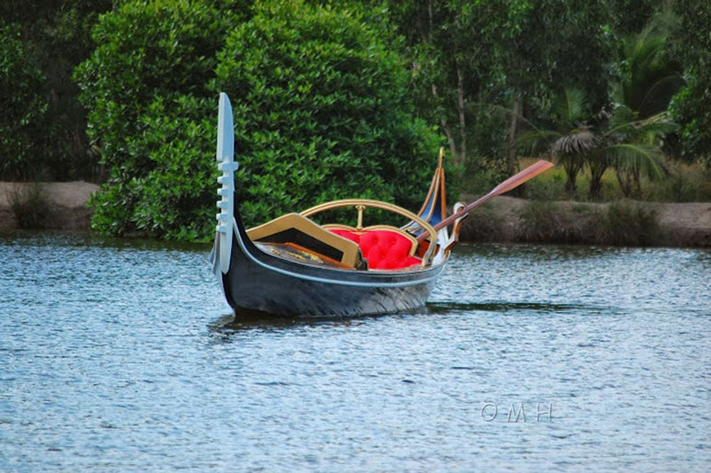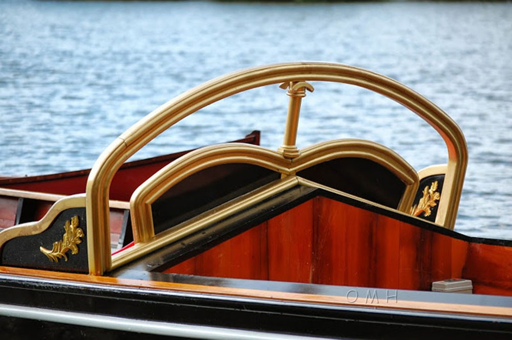 The most famous and characteristic symbol of Venice is the Gondola. This boat represents a typical Venetian Gondola circa 1882. The gondola is a traditional, flat-bottomed Venetian rowing boat, well suited to the conditions of the Venetian lagoon. For centuries gondolas were the chief means of transportation and most common watercraft within Venice. In modern times the iconic boats still have a role in public transport in the city, serving as traghetti (ferries) over the Grand Canal. They are also used in special regattas (rowing races) held amongst gondoliers. The gondola is propelled like punting, except an oar is used instead of a pole. The model now is rebuilt without the roof in the middle of the boat and used to carry tourists along the Venice River in Italy.