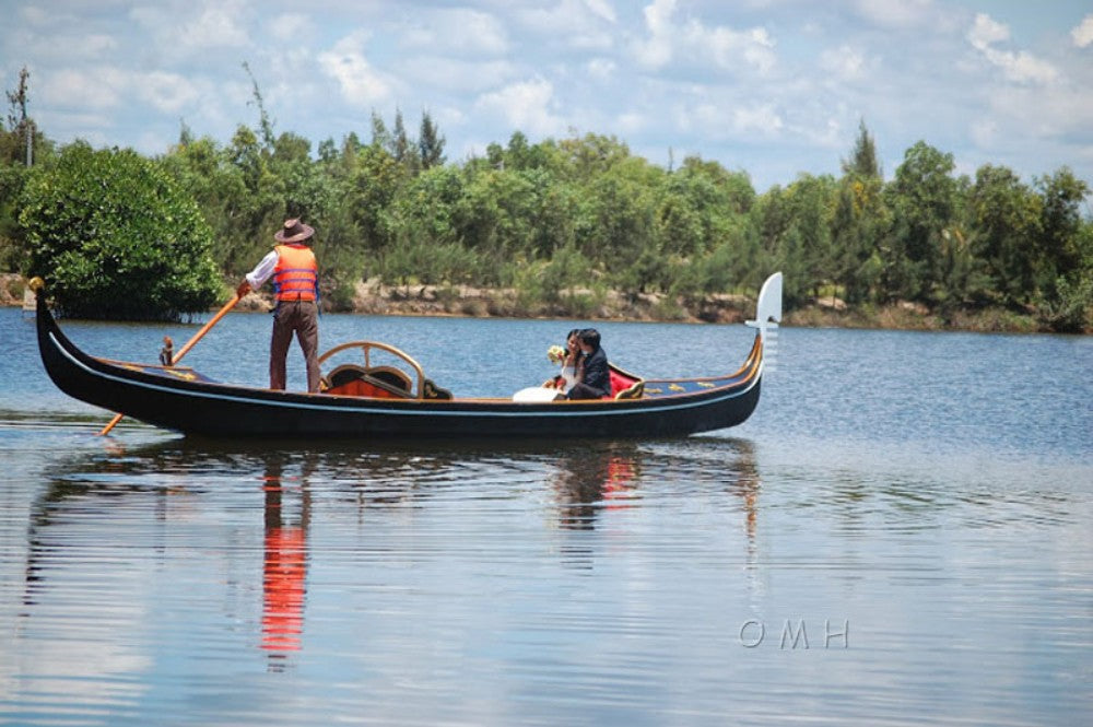 This is the REAL version of the Venetian Gondola. Fully functional at 36-feet long and beautifully painted in its original color black with white stripe. We also have a 24-feet long gondola available, upon request. This boat was completely handcrafted and takes about 600-800 hours to build. We still use the traditional method of constructions while integrating the highest quality of materials currently available. Strips of red cedars are joined together by hand and then encapsulated in fiberglass bonded in place with epoxy resin then coated with marine vanish. This combination of fiberglass and epoxy is very strong and the wood will be protected for generations. Important Note: Please be aware that this gondola is a SPECIAL ORDER item which means right after you have placed the order, it will take about 90-120 days for us to build and ship it to you.