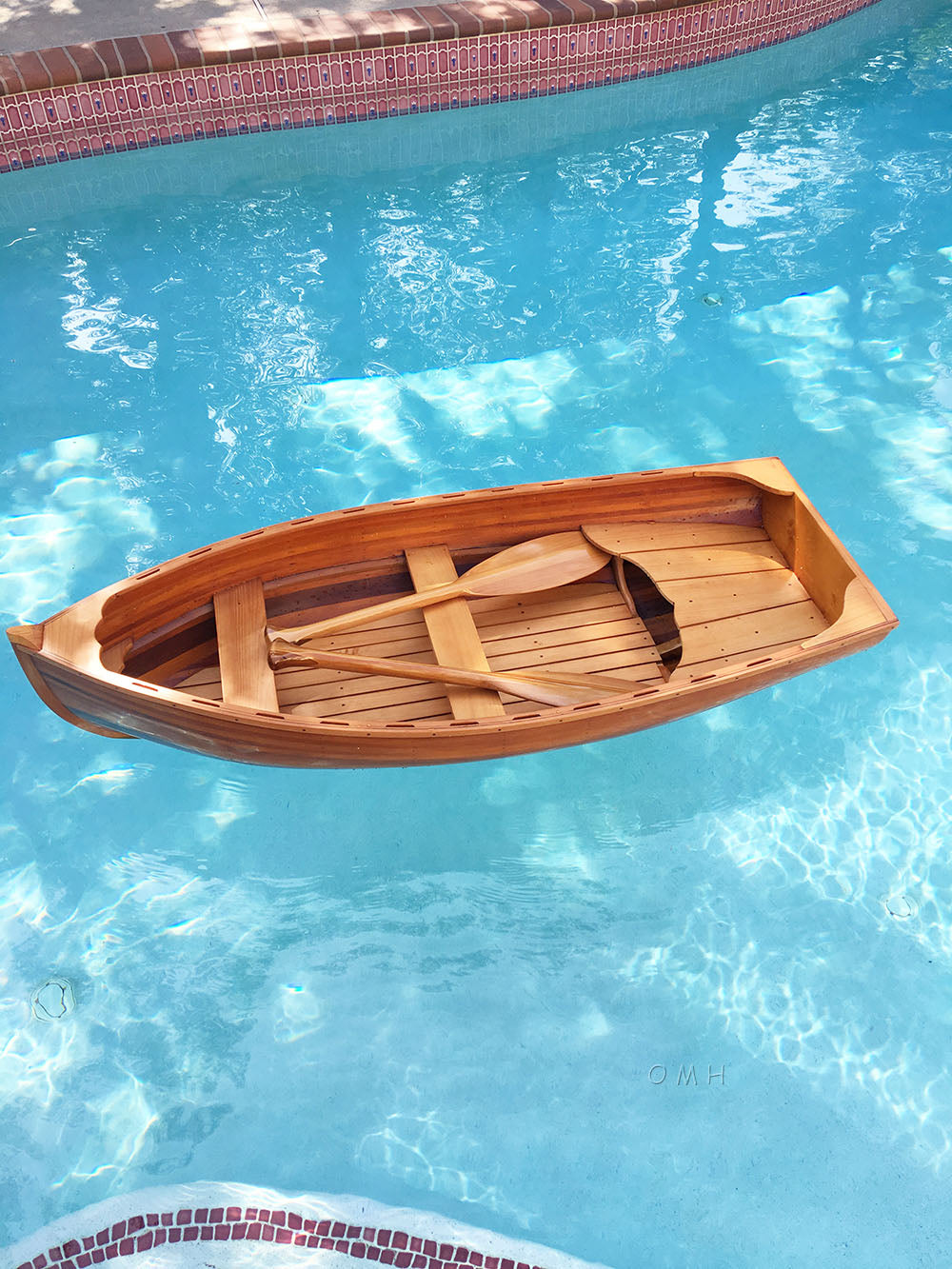 A display piece extraordinaire, this 5-feet long Whitehall canoe will perfectly complement any room, any staging area or anywhere else you can think of to place this artistic masterpiece. It is also lightweight and versatile for use in swimming pool with personal flotation device along with adult supervision. For those who truly appreciate the work of artisans and the pride of craftsmanship, this Whitehall display canoe is the only one for you. Features - Stunning beautiful clear graded cedar hull. - Fiberglass adds important tensile strength and abrasion resistance to the wood. - 100% western red cedar makes our boats surprisingly lightweight. - Stainless steel hardware - Paddle is included Boat Dim: L: 62", W: 26.5", and bow height: 14.5" Weight: 24lbs