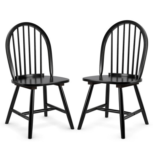 Set of 2 Vintage Windsor Wood Chair with Spindle Back for Dining Room-Black